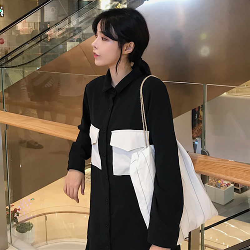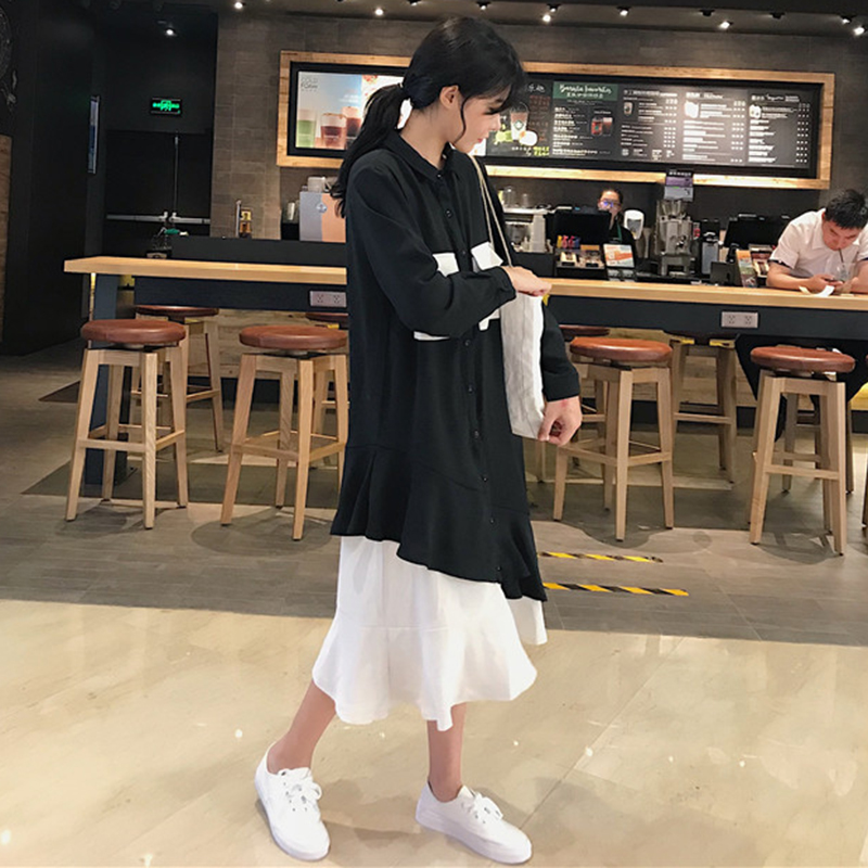 秋裝女2018新款秋季成熟風冷系女裝連衣裙子學生長袖純色長裙子