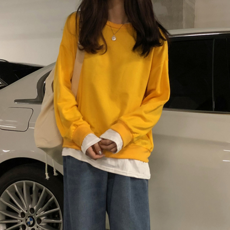 秋裝原宿假兩件慵懶風衛衣女2018新款學生韓版寬松長袖上衣套頭衫