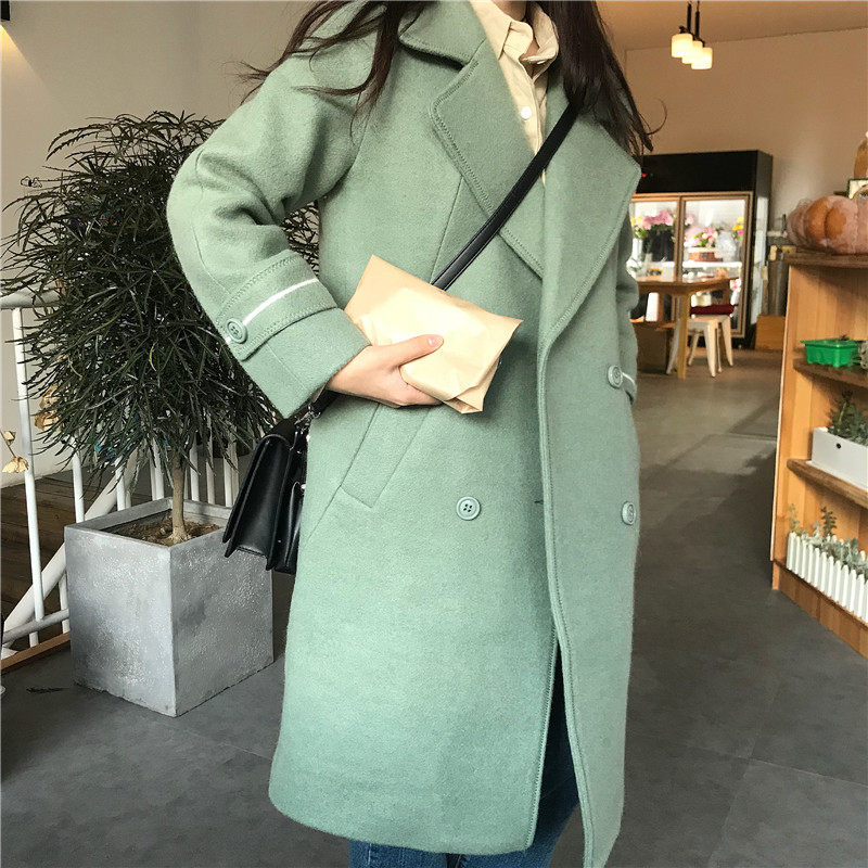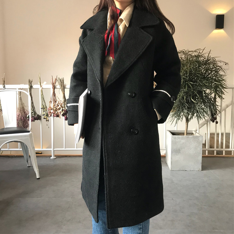 復古雙排扣毛呢外套秋裝女2018新款韓版chic明線翻領休閑開衫上衣