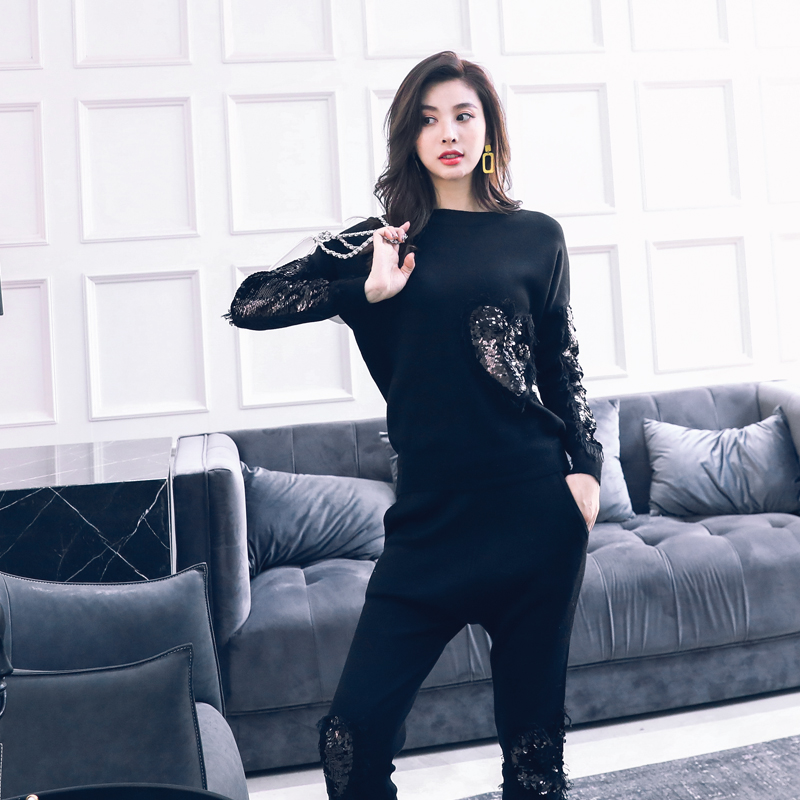 休閑時尚套裝女2018秋冬裝新款長袖毛衣小腳褲長褲針織兩件套