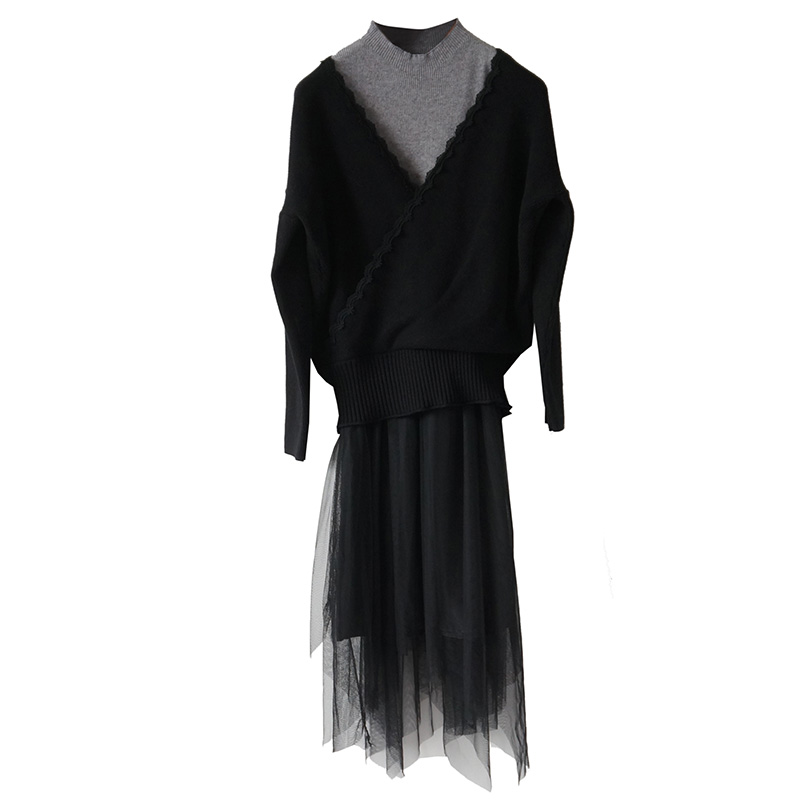 / 初秋季新款女時尚氣質顯瘦網紅女神毛衣網紗連衣裙子超仙兩件套裝