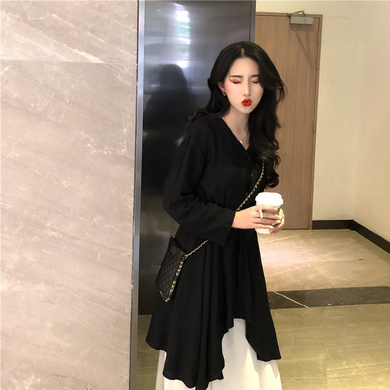 / 2018新款洋氣時尚套裝chic裙子兩件套長袖連衣裙外搭冷淡風裙女裝