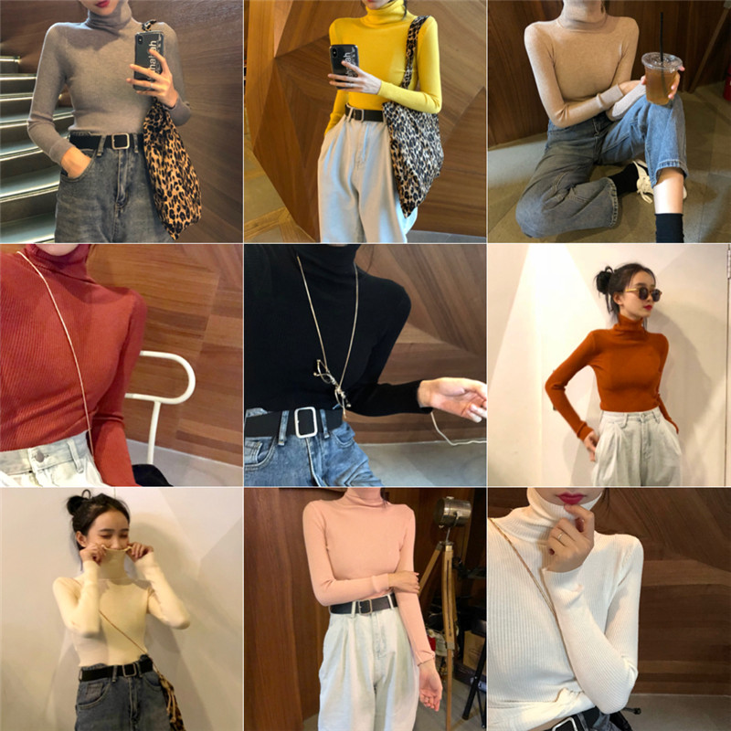 2018秋冬新款百搭款純色高領顯瘦彈力毛針織衫韓版打底衫內搭毛衣