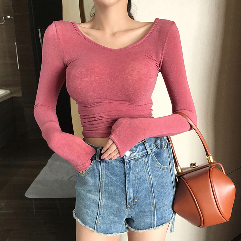 / 秋裝新款打底衫港味小心機上衣修身女裝顯瘦薄針織長袖T恤女衣服