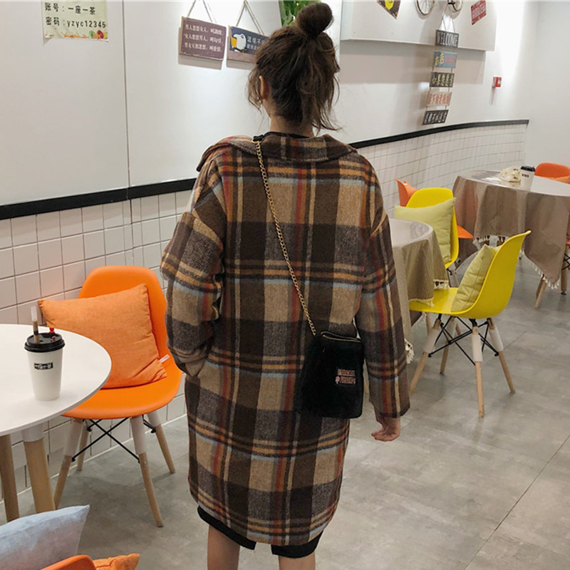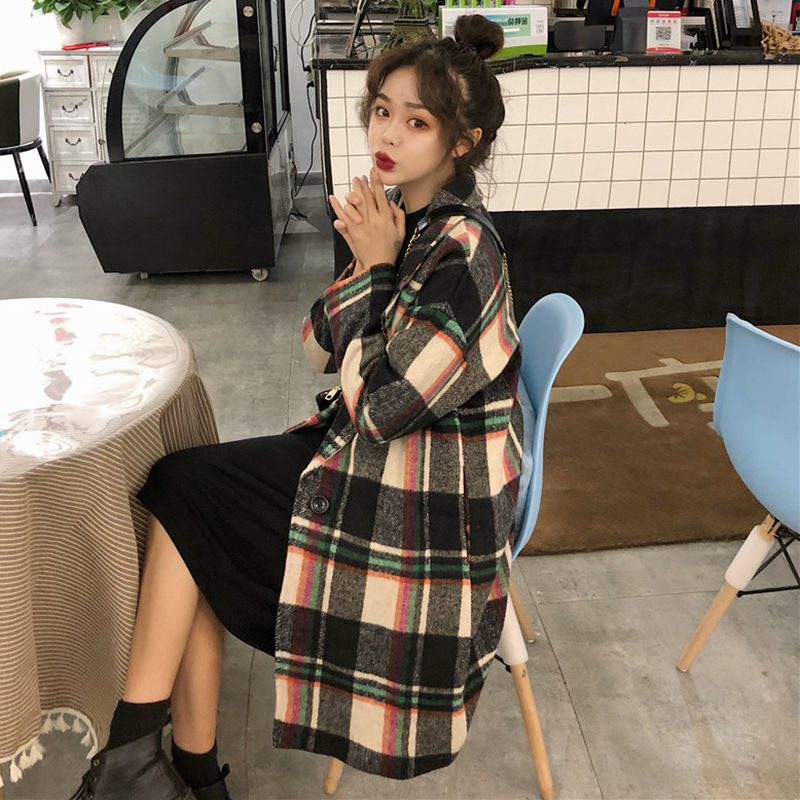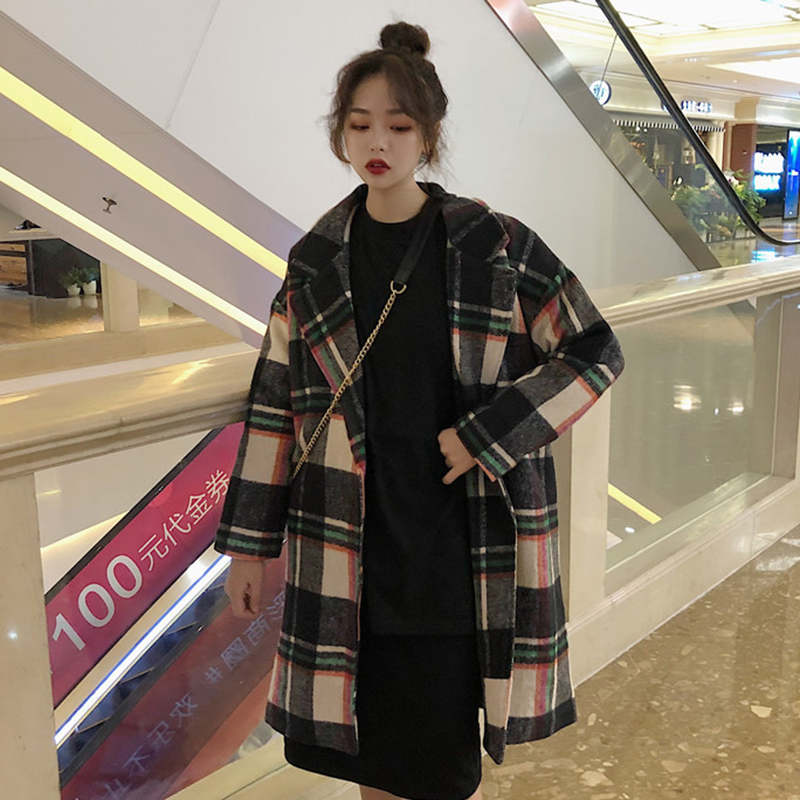 冬季女裝2018新款韓版復古風衣學生流行呢子大衣港味格子毛呢外套