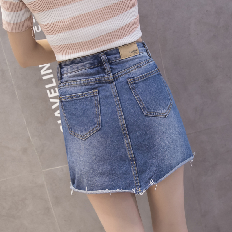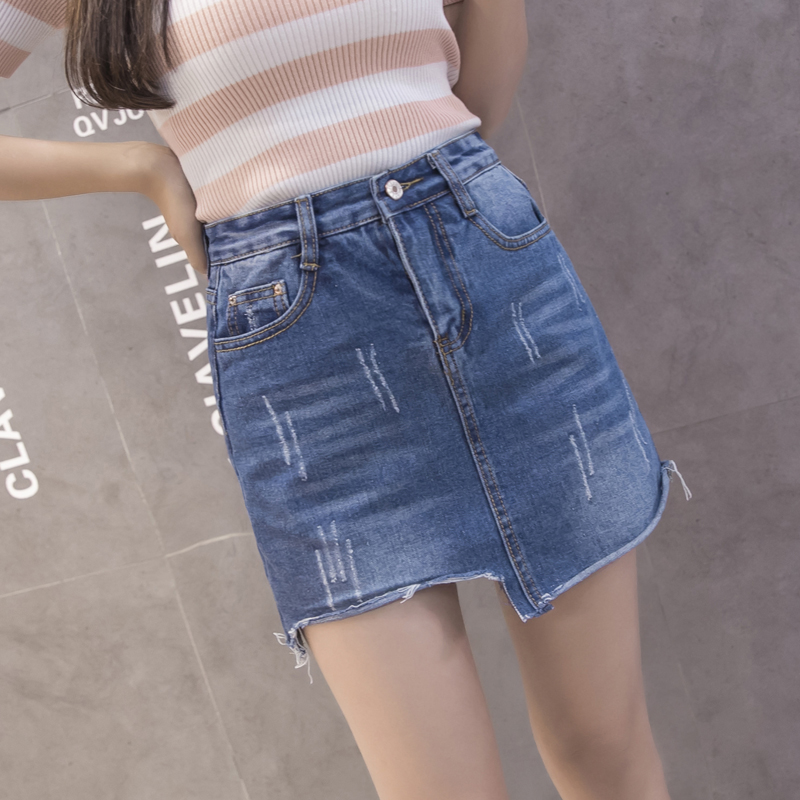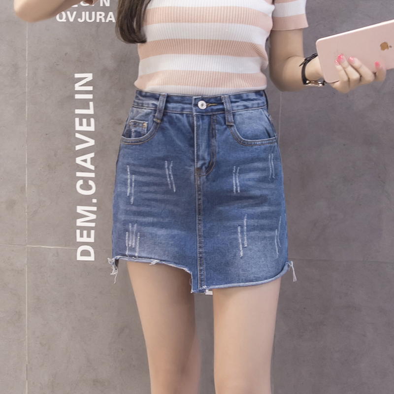 / 不規則破洞牛仔裙半身裙女韓版高腰A字裙包臀短裙防走光褲裙夏季