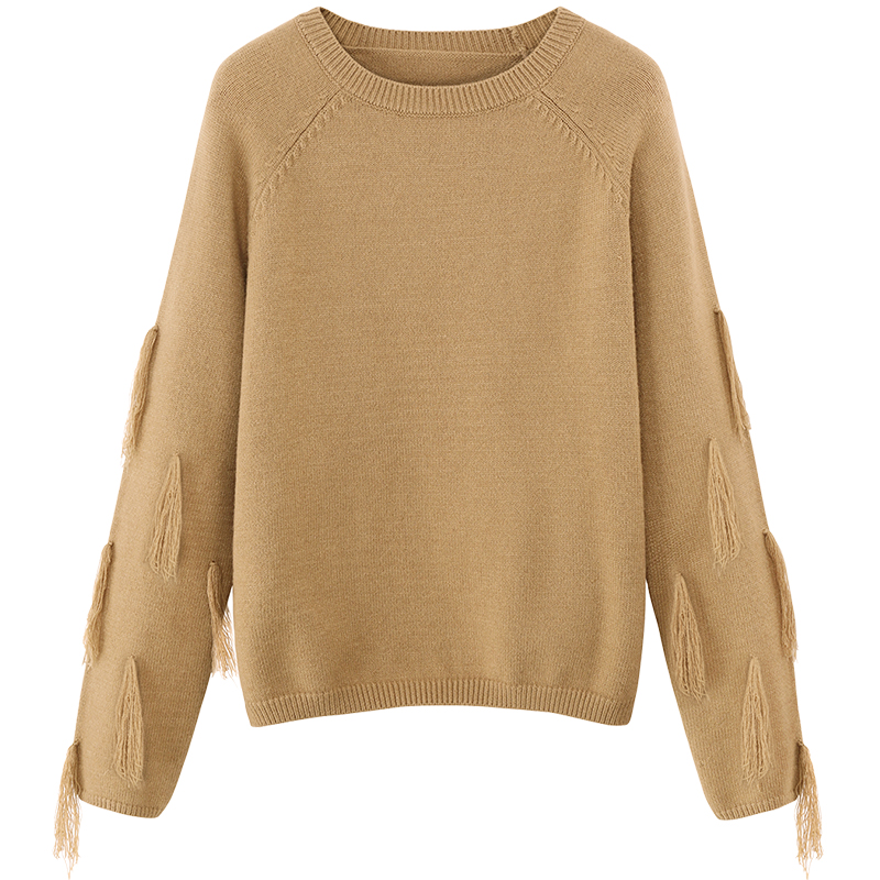 MG小象純色套頭毛衣女冬季2018新款學生圓領上衣流蘇針織毛線衣潮