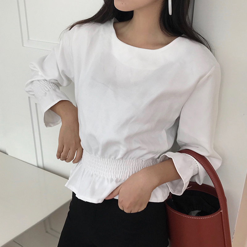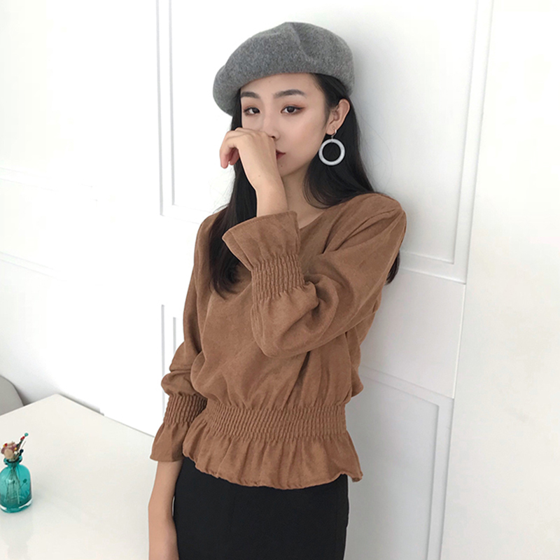 / 秋裝女2018新款時尚圓領彈力收腰短款T恤修身喇叭長袖打底上衣潮