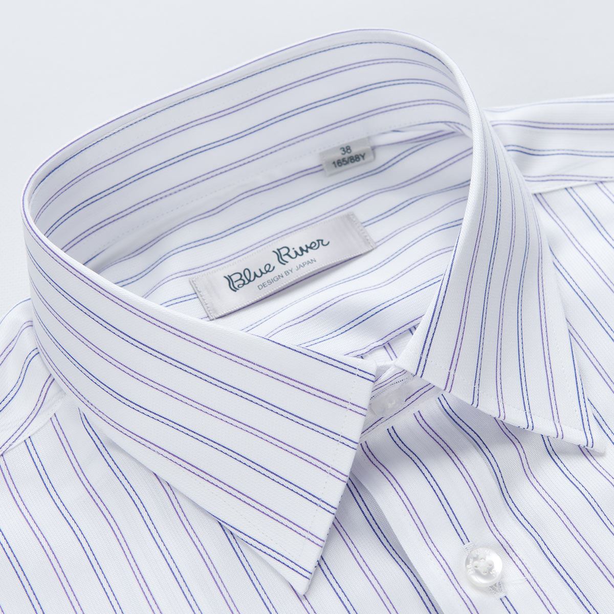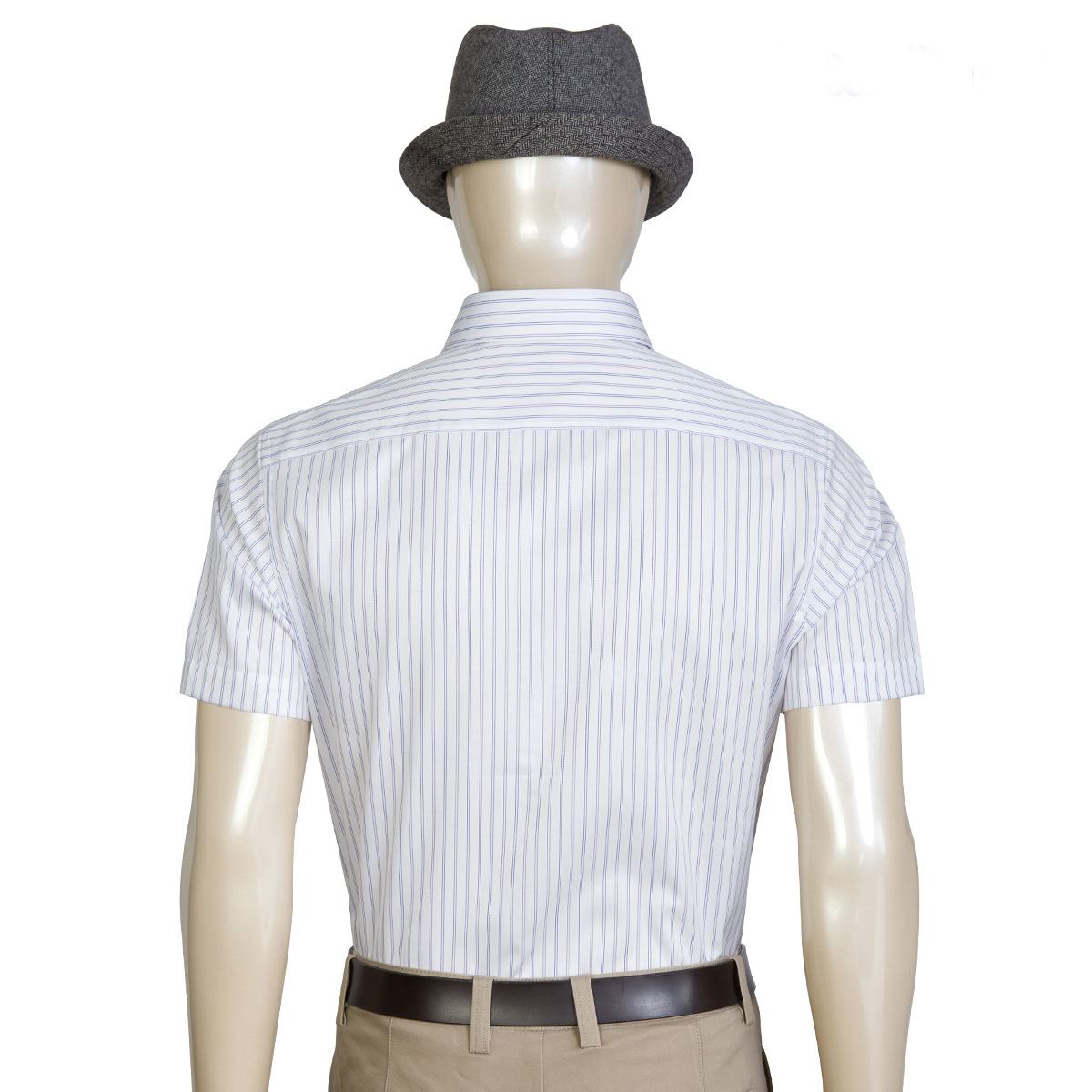 / 藍河夏裝商務男襯衫短袖修身純棉免燙紫色藍色細條紋襯衣