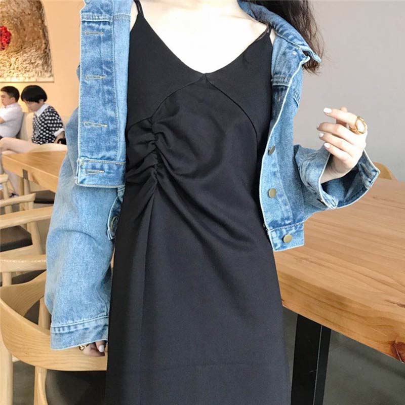 / 溫柔風開叉長款打底黑色吊帶連衣裙子秋裝2018新款氣質長裙女內搭
