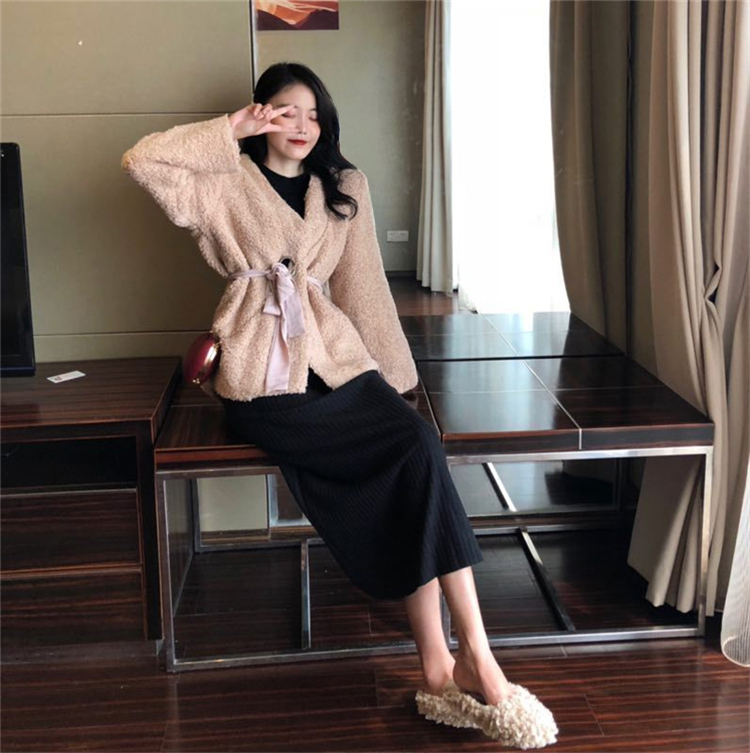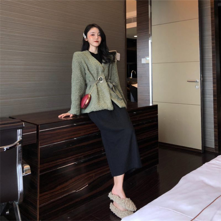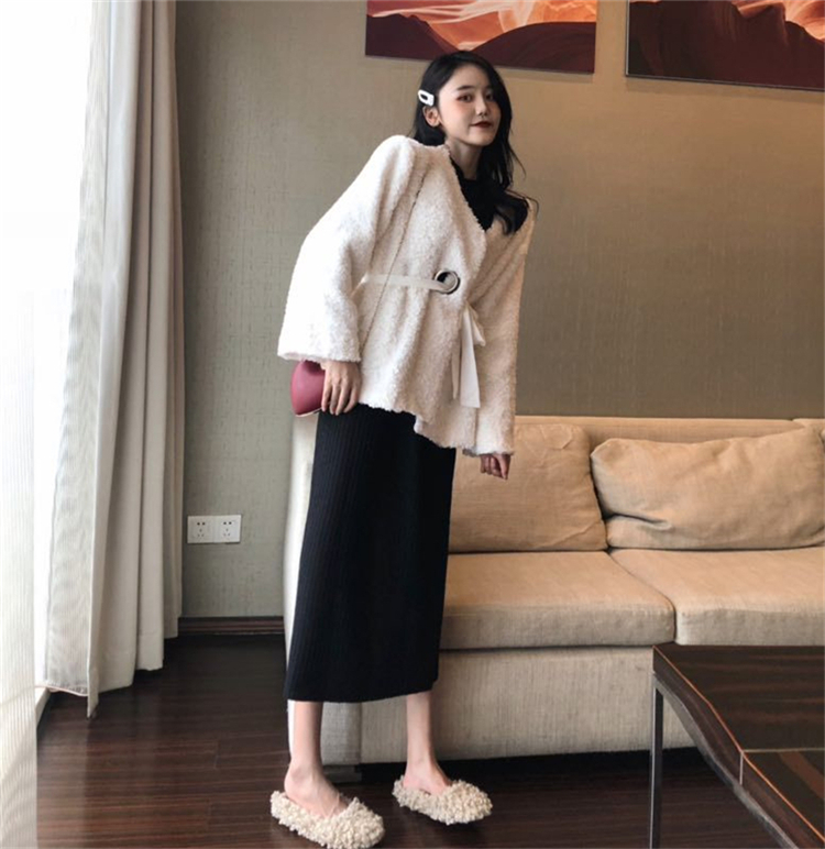 2018秋裝新款韓版加厚保暖寬松百搭大衣打底針織衫半身裙時尚套裝