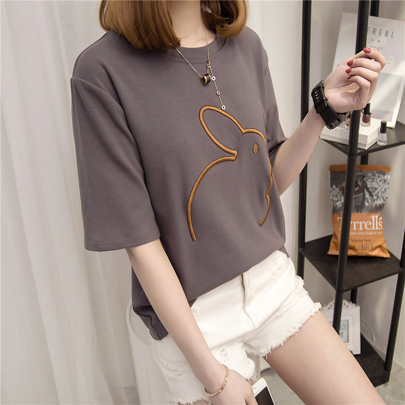 夏裝新款潮女裝上衣短袖t恤女寬松套頭韓版體恤衫女學生百搭