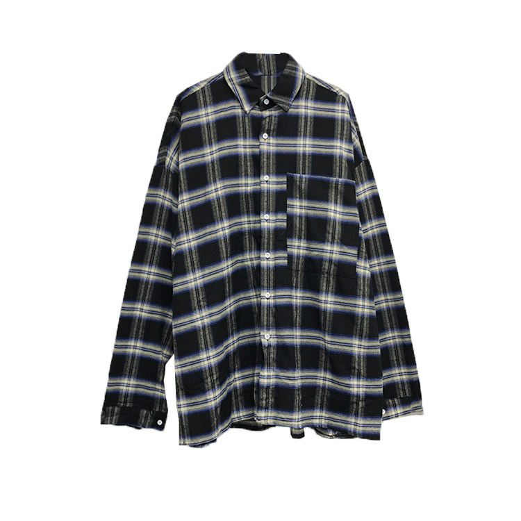 襯衣女2018新款港風顯瘦oversize慵懶寬松格子泡泡袖毛呢襯衫外套