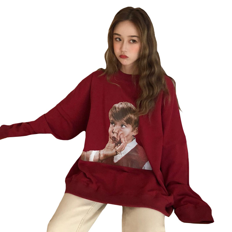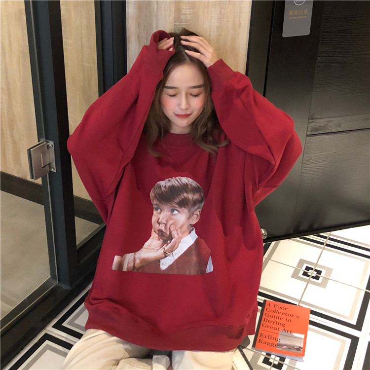 / 秋冬女裝韓版中長款原宿風小孩字母寬松套頭加絨加厚超火衛衣外套