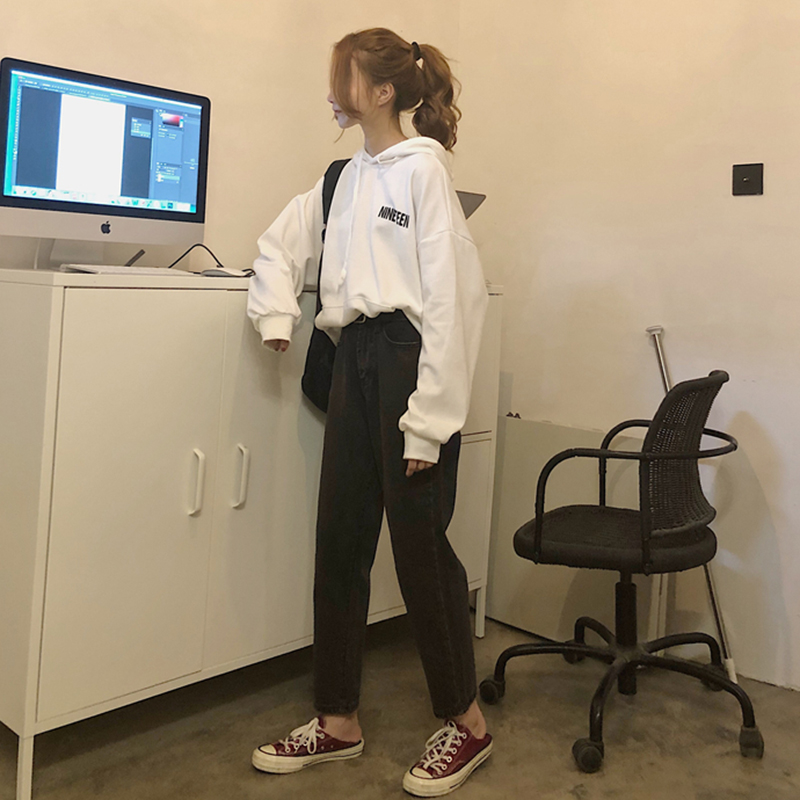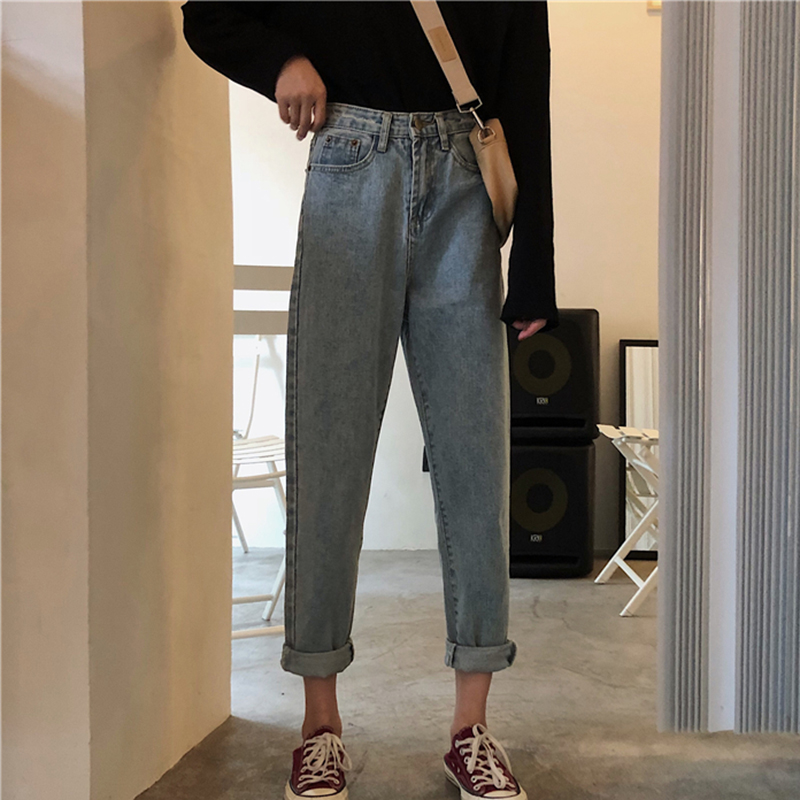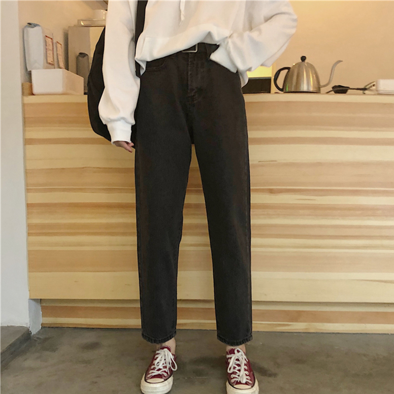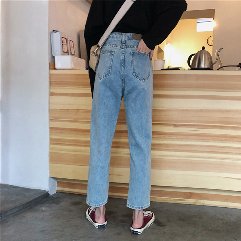 / 水洗牛仔褲2018秋冬新款韓版女裝學生高腰直筒褲寬松顯瘦九分褲子