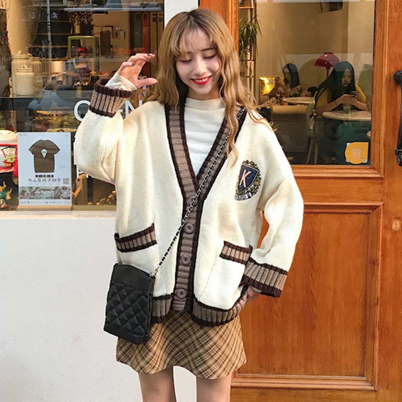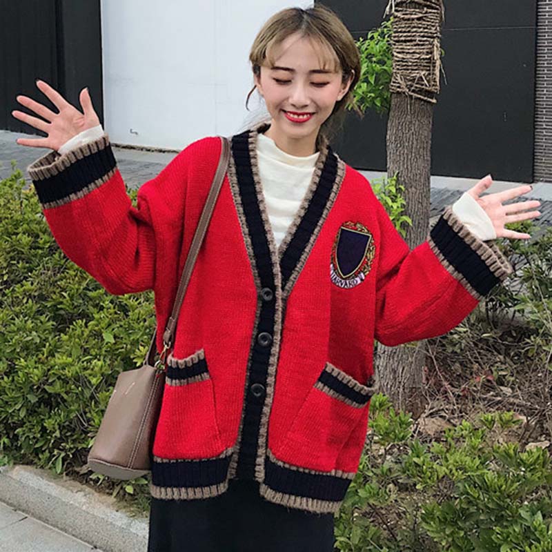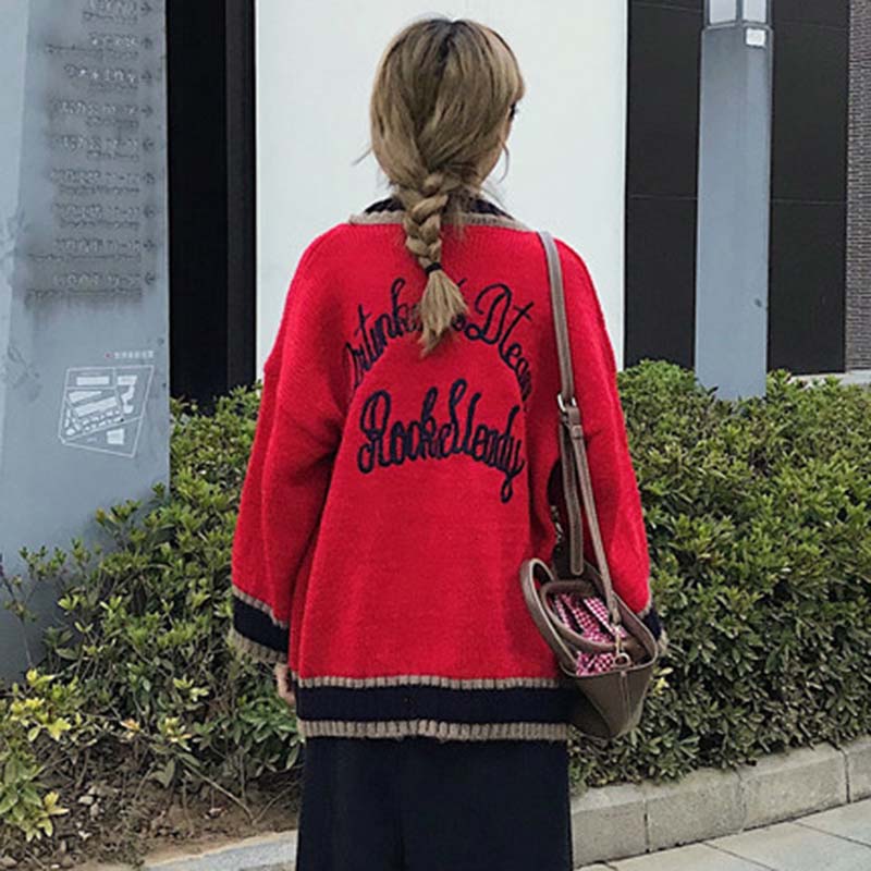 / 秋冬女裝韓版慵懶風復古字母寬松加厚長袖針織衫毛衣開衫休閑外套