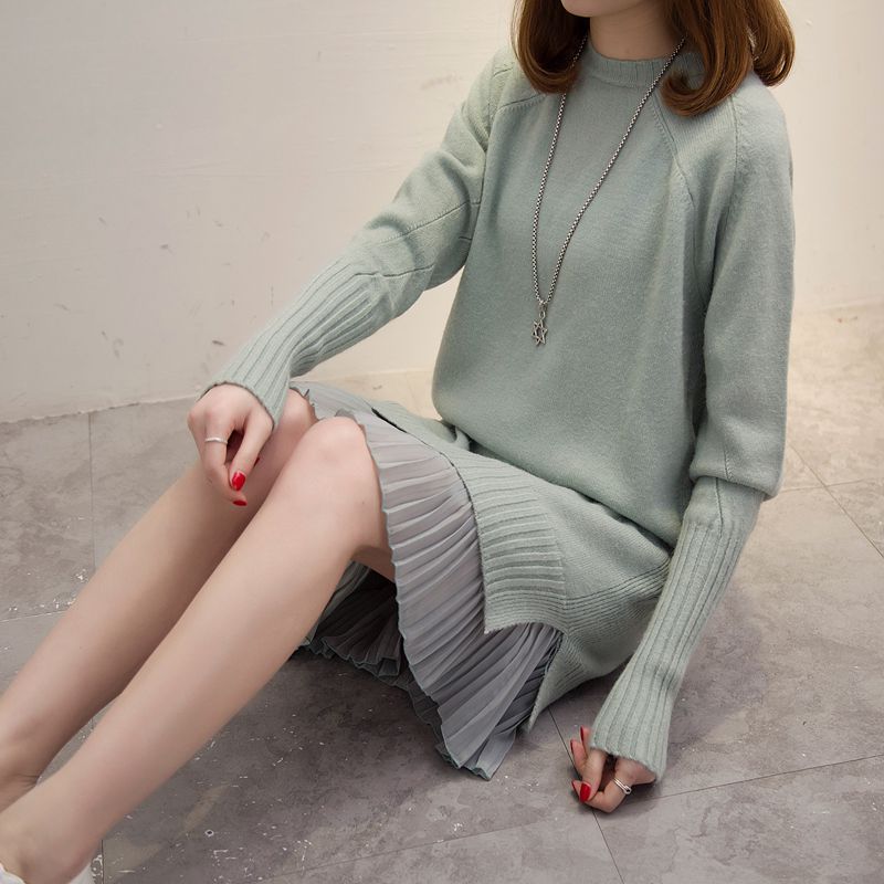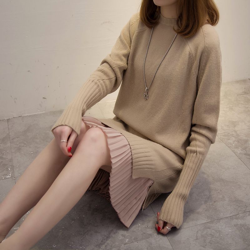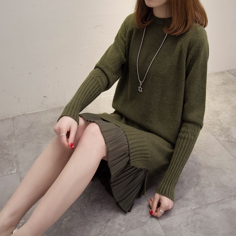 / 女裝冬裝新款潮套頭女針織衫上衣毛衣女秋冬純色中長款外套女