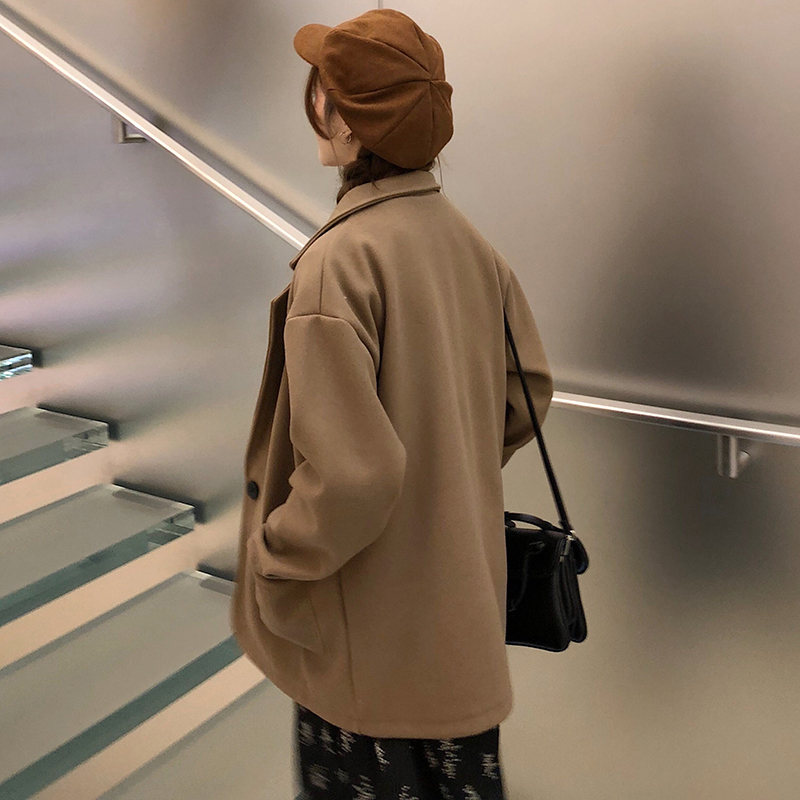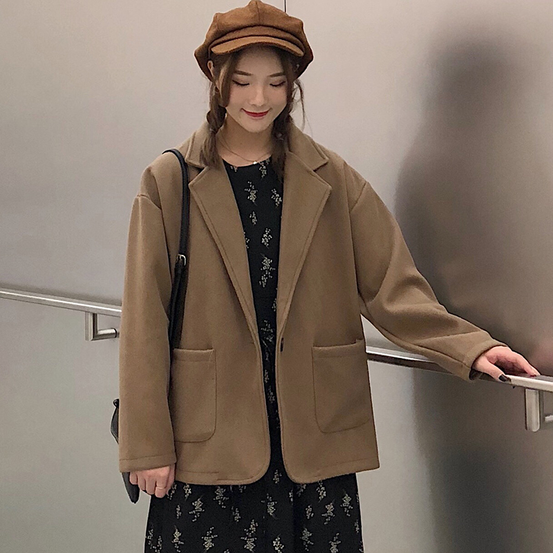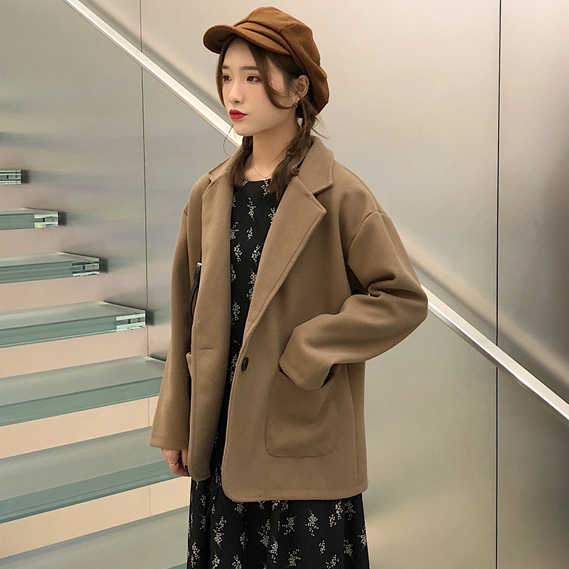 2018流行毛呢西裝外套女秋冬裝新款赫本翻領長袖開衫寬松黑色上衣
