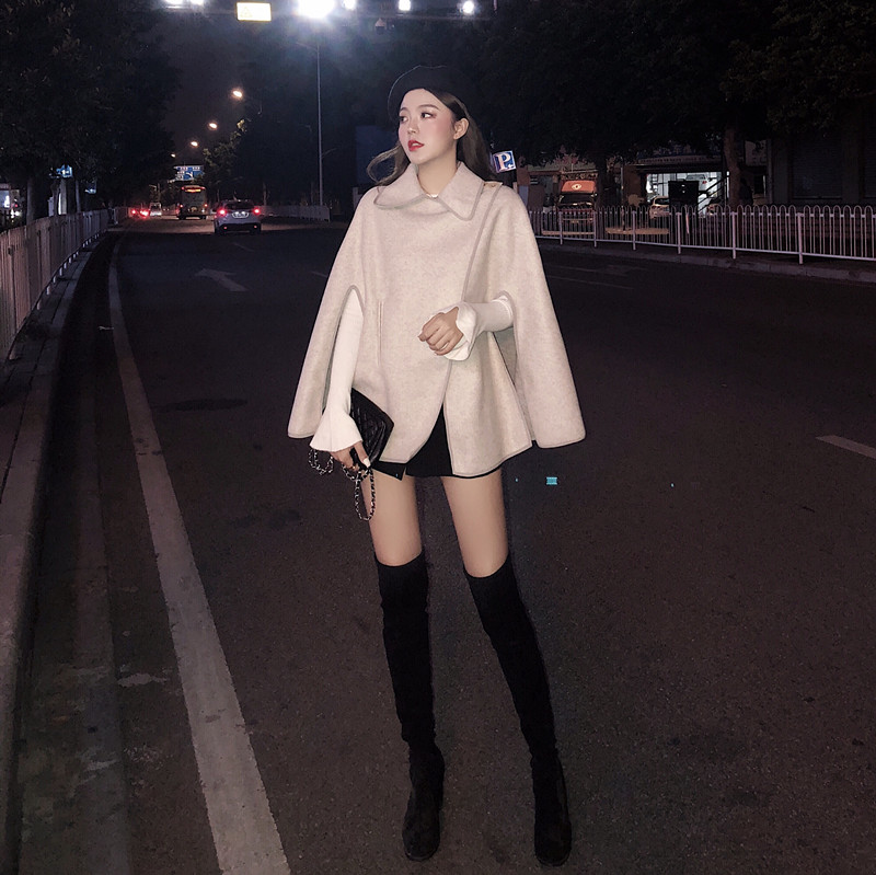 / 復古早秋chic外套女春秋2018新款韓版百搭款寬松斗篷披肩毛呢外套