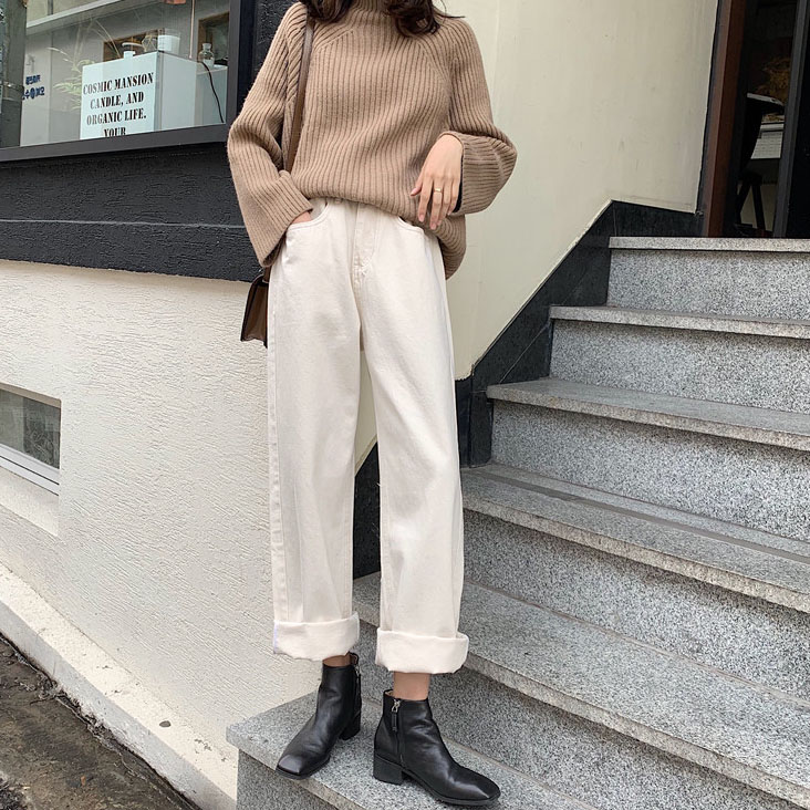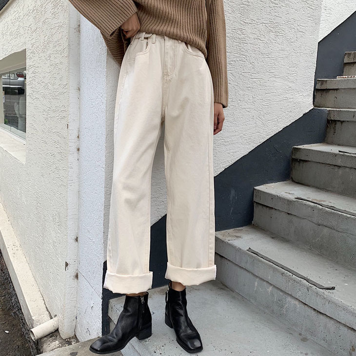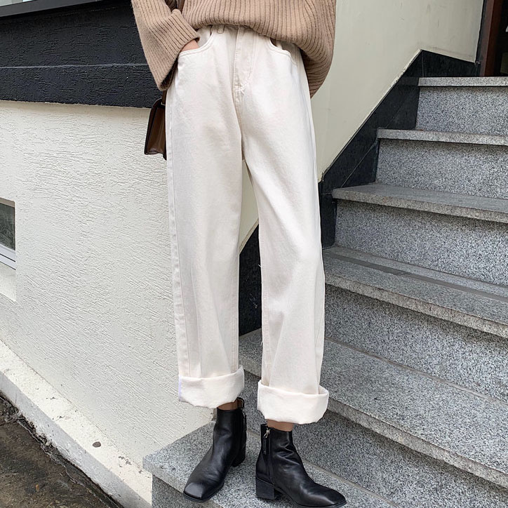 韓版時尚褲子女秋冬2018新款純色百搭寬松顯瘦百搭牛仔褲女闊腿褲