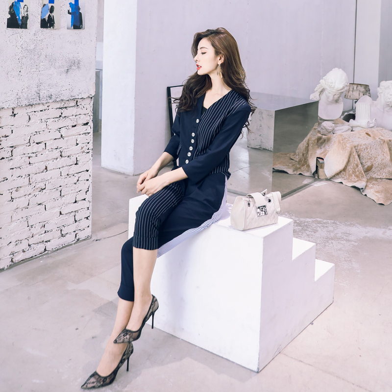 歐洲站秋正裝英倫chic女士小西裝套裝拼接西服休閑氣質2018兩件套