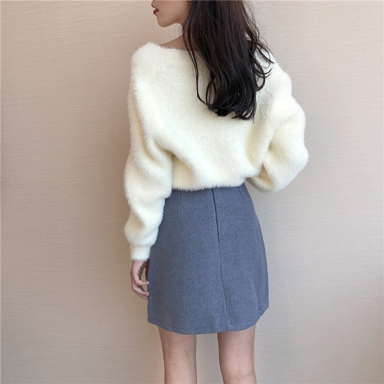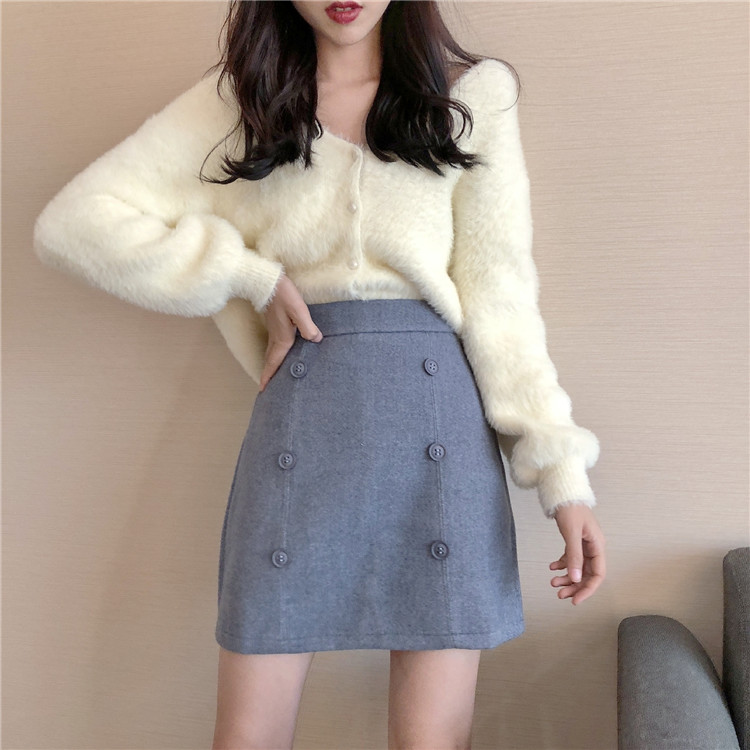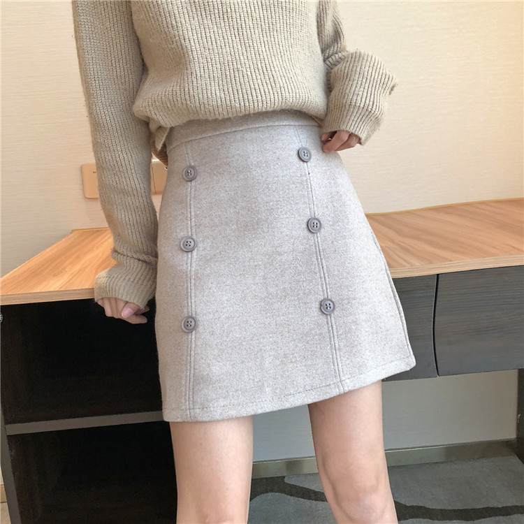 / 裙子女新款韓版chic港味復古雙排扣純色厚毛呢內襯高腰A字半身裙