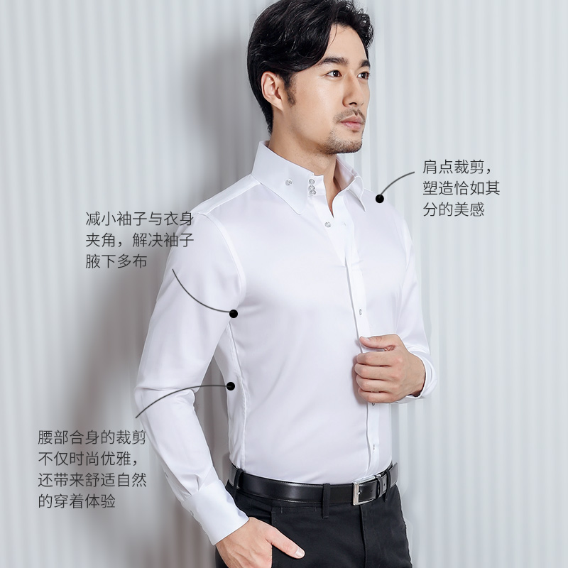 / 絲光棉純棉免燙圓角高領襯衫男長袖修身青年男士襯衣韓版帥氣潮流