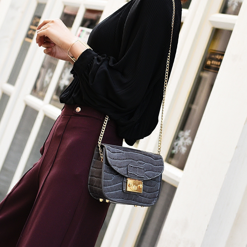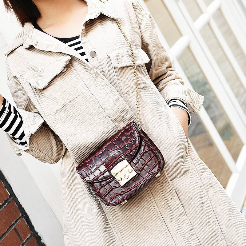 / 鏈條包包女新款潮鱷魚紋迷你小方包韓版百搭斜挎單肩女包小包