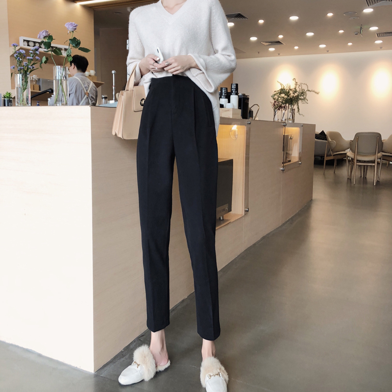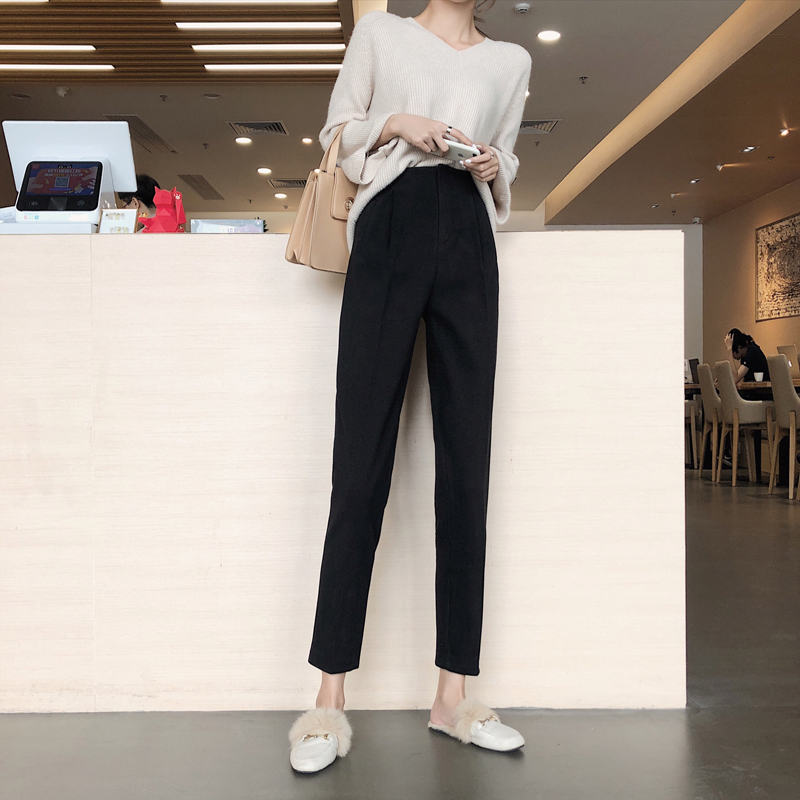 / 褲子女秋冬時尚新款毛呢哈倫褲直筒西裝褲百搭寬松百搭休閑九分褲