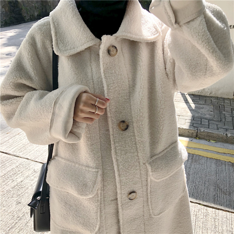 毛呢外套女冬季大衣女新款2018韓版百搭新羊羔絨中長款加厚上衣潮