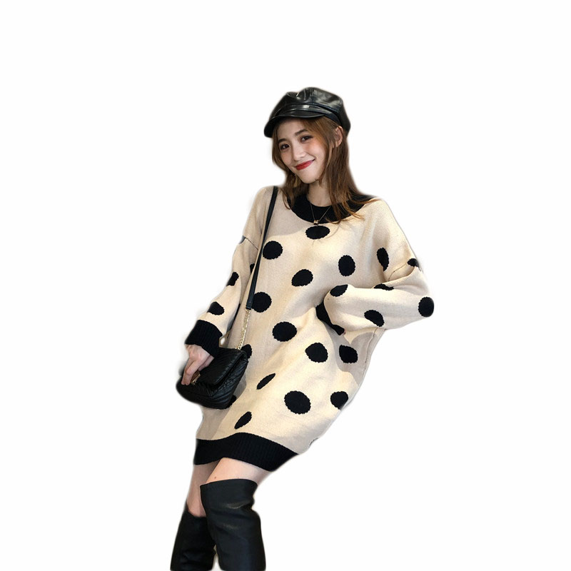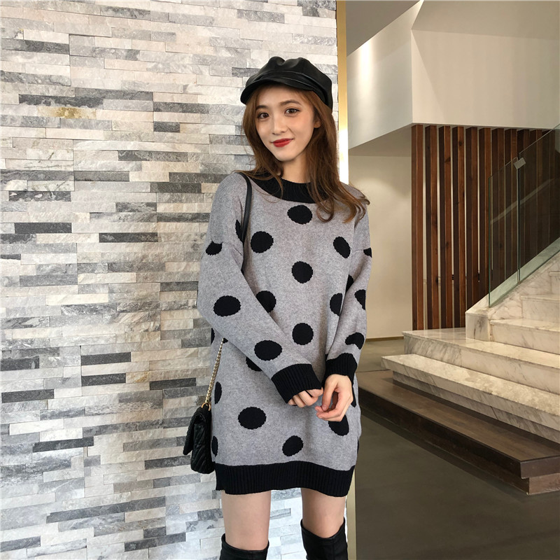 / 慵懶針織連衣裙女2018秋冬新款百搭波點寬松中長款套頭長袖毛衣女