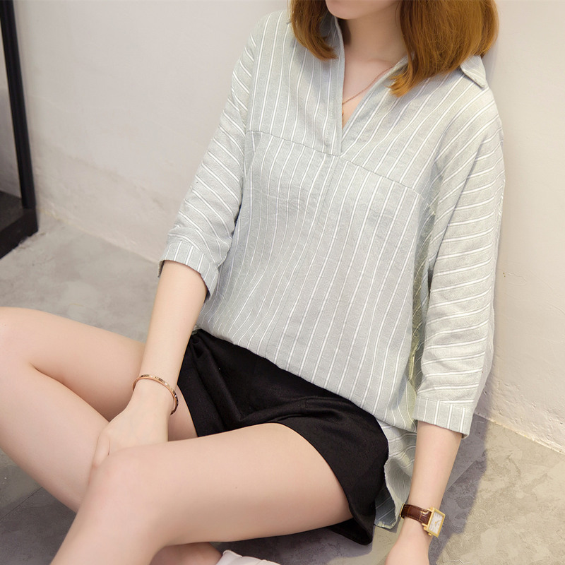 / 條紋襯衫女短袖韓范寬松bf風夏裝襯衣韓版百搭學生小清新上衣