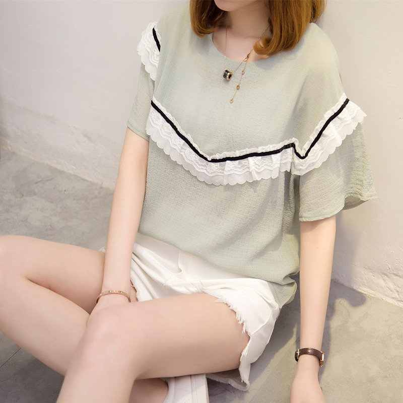 / 夏裝新款女短袖t恤女裝韓版女上衣百搭拼接蕾絲打底體恤衫潮