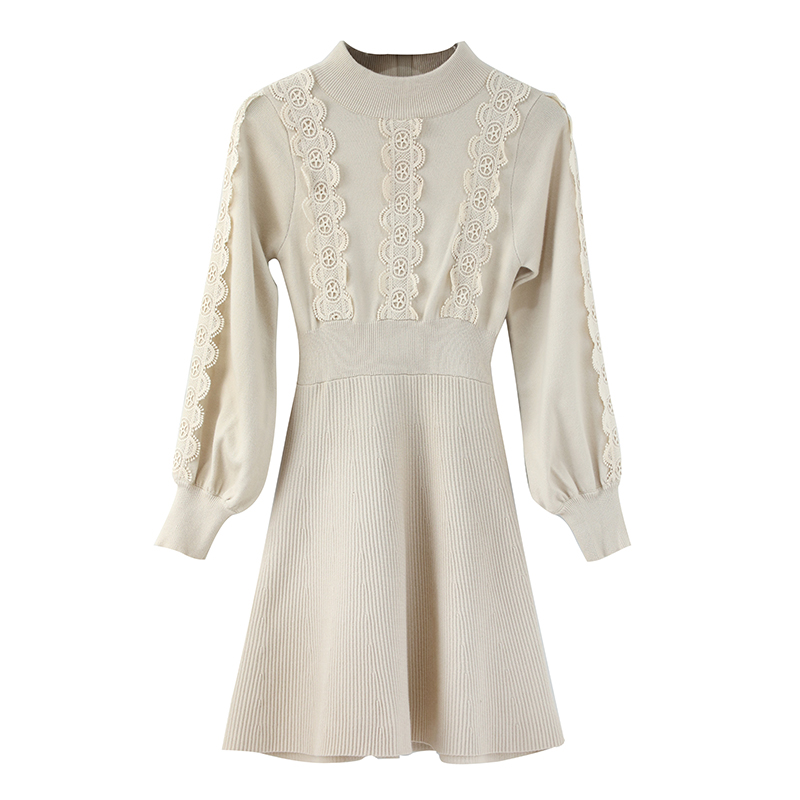 甜美氣質2018秋女裝裙新款針織半高領長袖氣質收腰純色高腰連衣裙