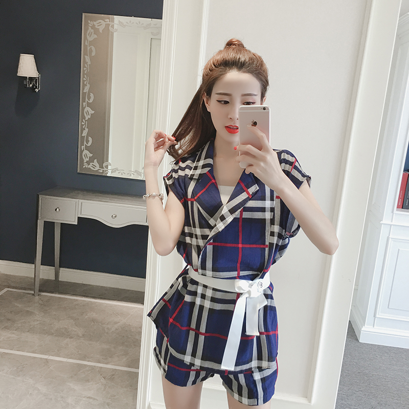 夏季新款韓版小香風無袖上衣格子套裝女休閑短褲棉麻兩件套潮
