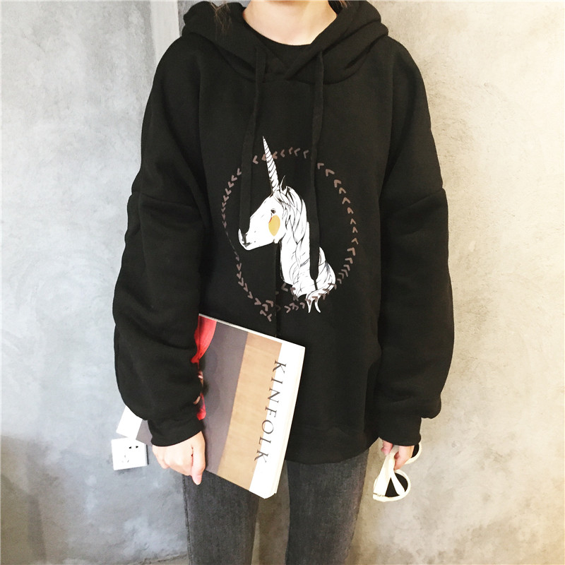 秋冬韓版原宿風可愛卡通連帽套頭寬松加絨加厚超火衛衣上衣外套女
