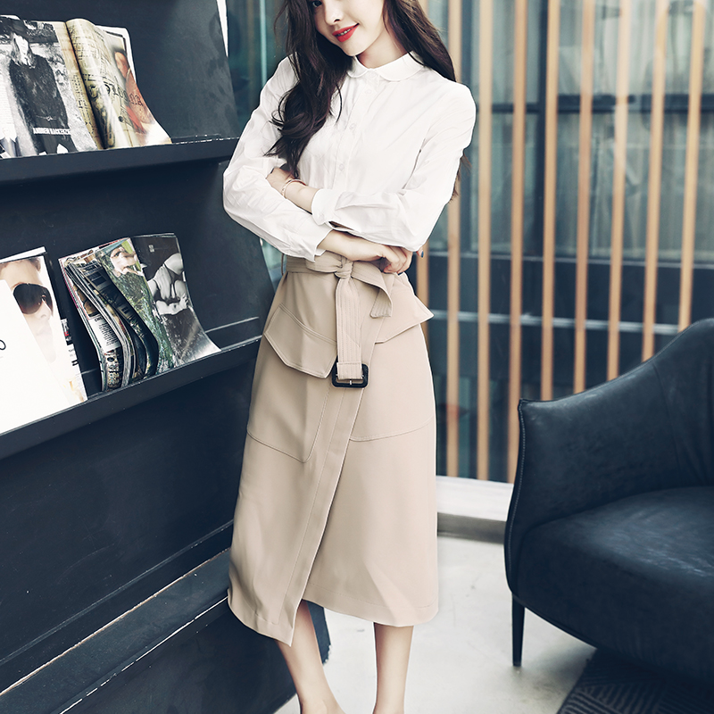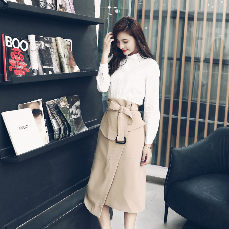 / OL名媛氣質2018新款秋季套裝洋氣高腰半身裙長袖襯衫兩件套裝裙潮