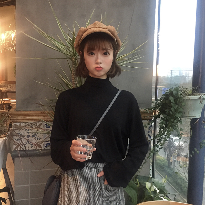/ 秋季女裝韓版針織半高領修身長袖T恤純色顯瘦打底衫體恤上衣學生