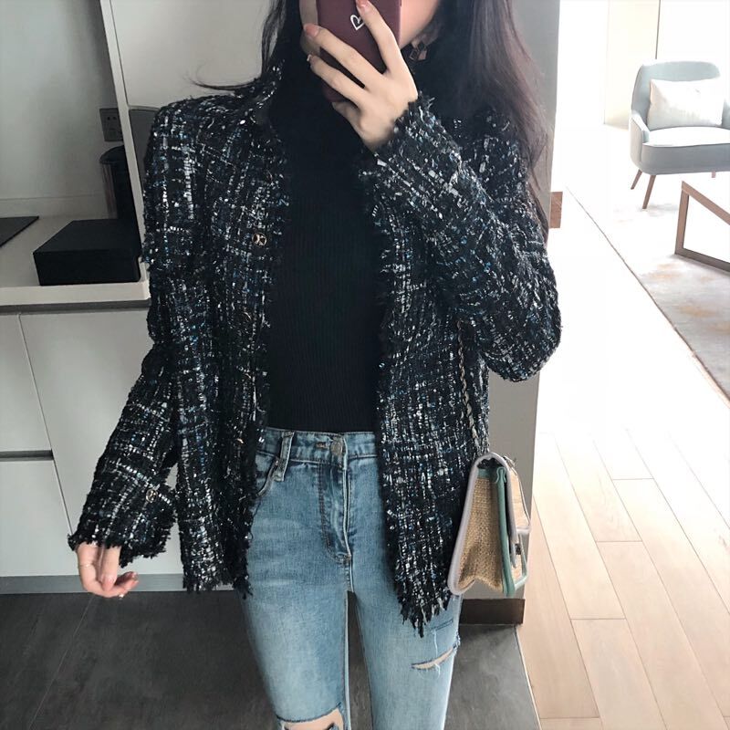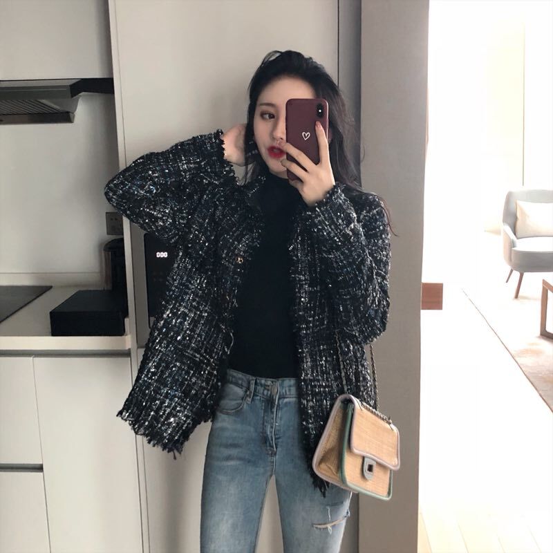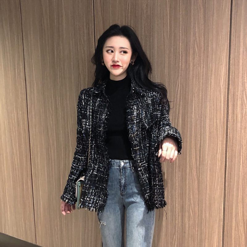復古粗花呢小香風毛呢外套女冬季大衣女新款2018韓版短款呢子大衣
