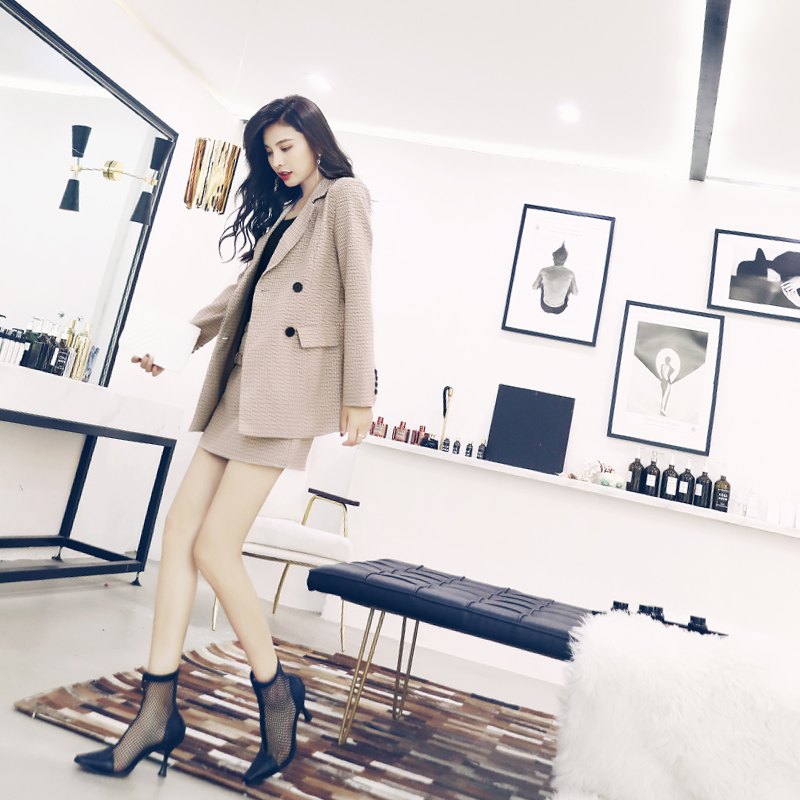格子西裝套裝女2018新款休閑時尚兩件套韓版短裙英倫風氣質春秋裝
