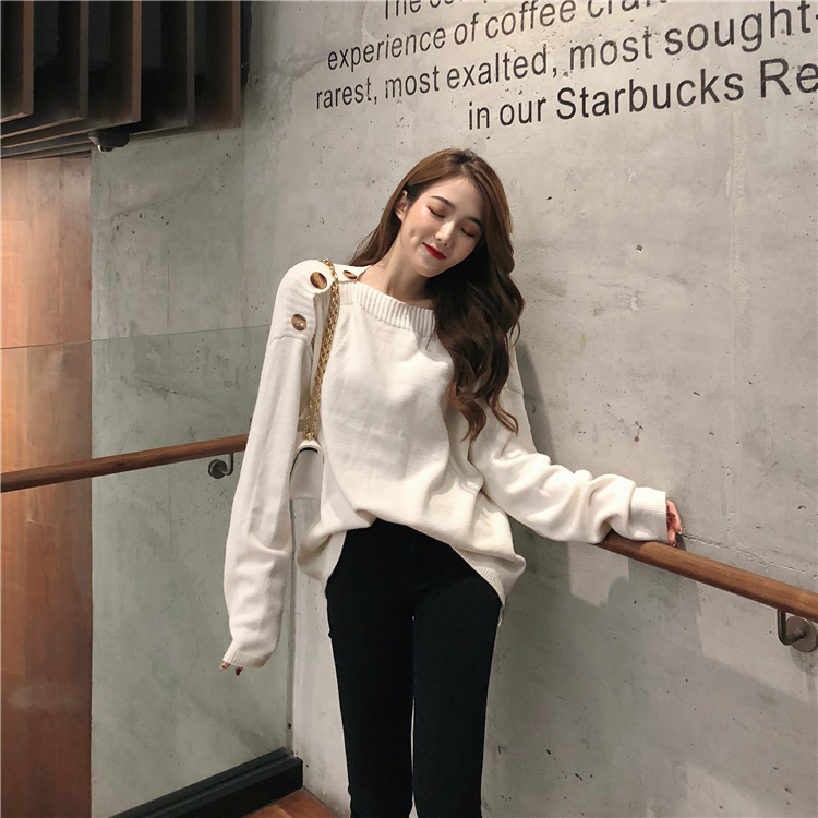 / 韓版單排扣學院風套頭針織毛衣女秋冬2018新款長袖寬松純色上衣潮