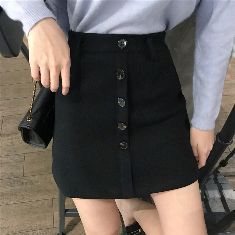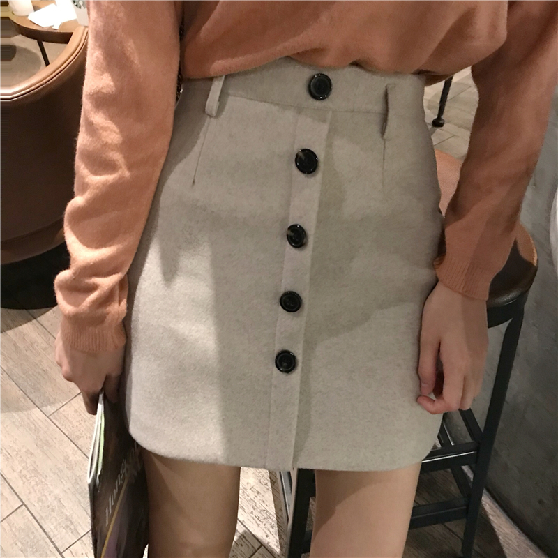 / 韓版復古裙子女秋冬2018新款高腰顯瘦毛呢排扣A字裙半身裙短裙女
