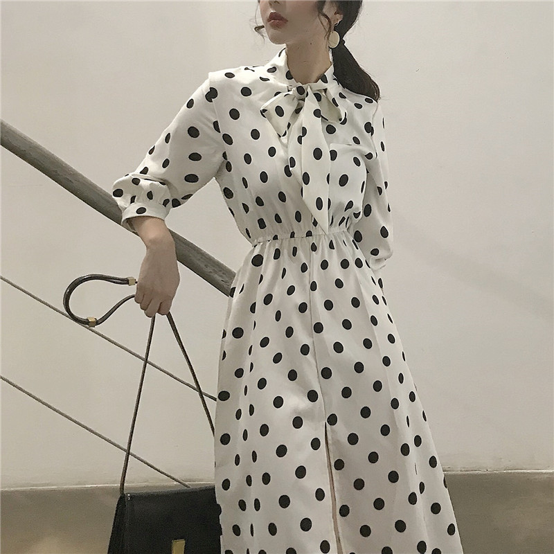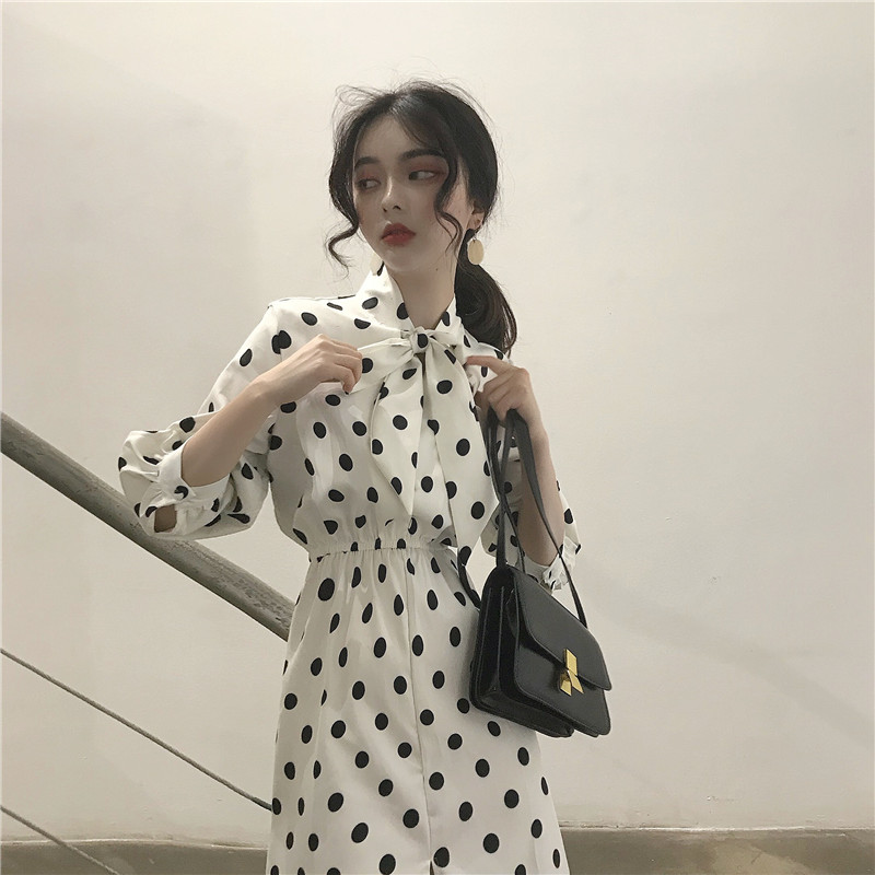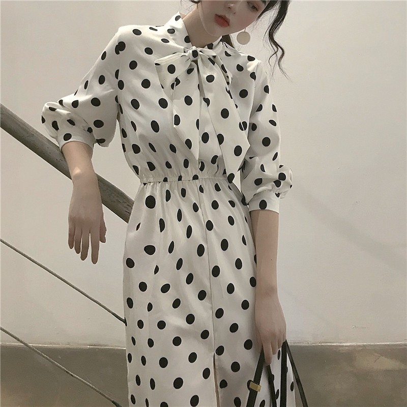 晚晚風森女系2018新款韓版小清新時尚溫婉復古風顯瘦百搭連衣裙潮