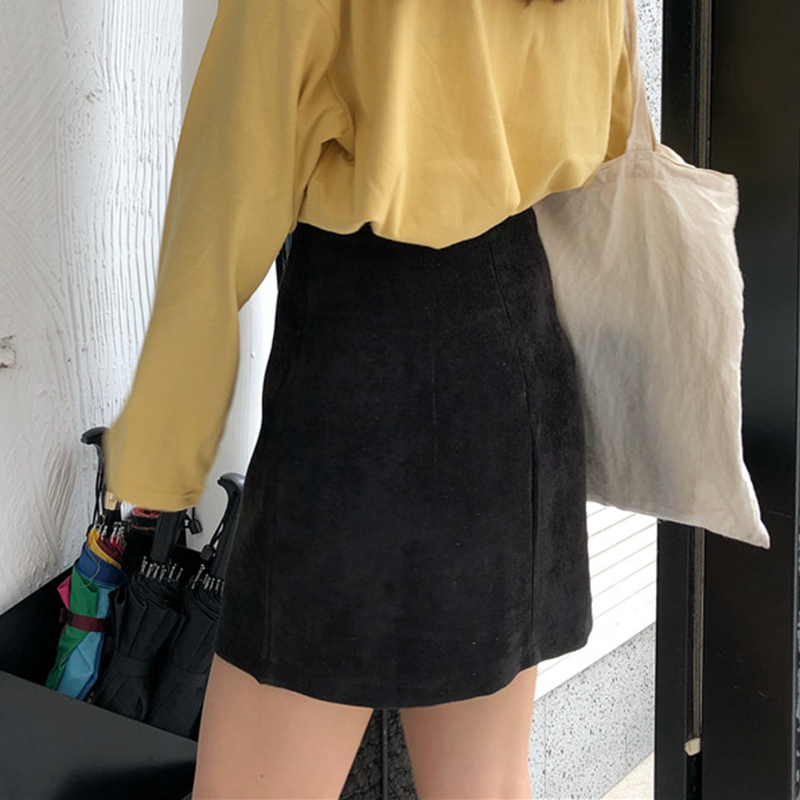 / 短裙女新款2018秋裝復古氣質高腰半身裙學生時尚黑色包臀A字裙子