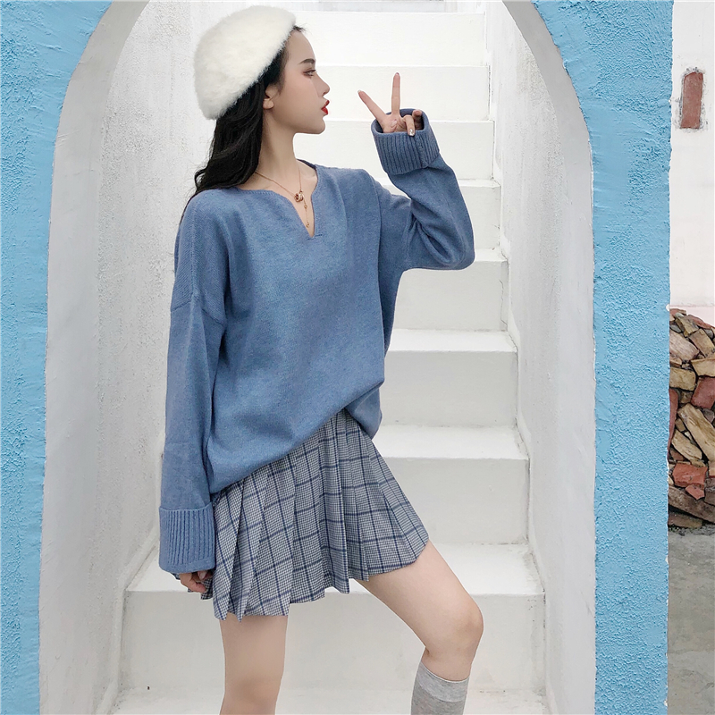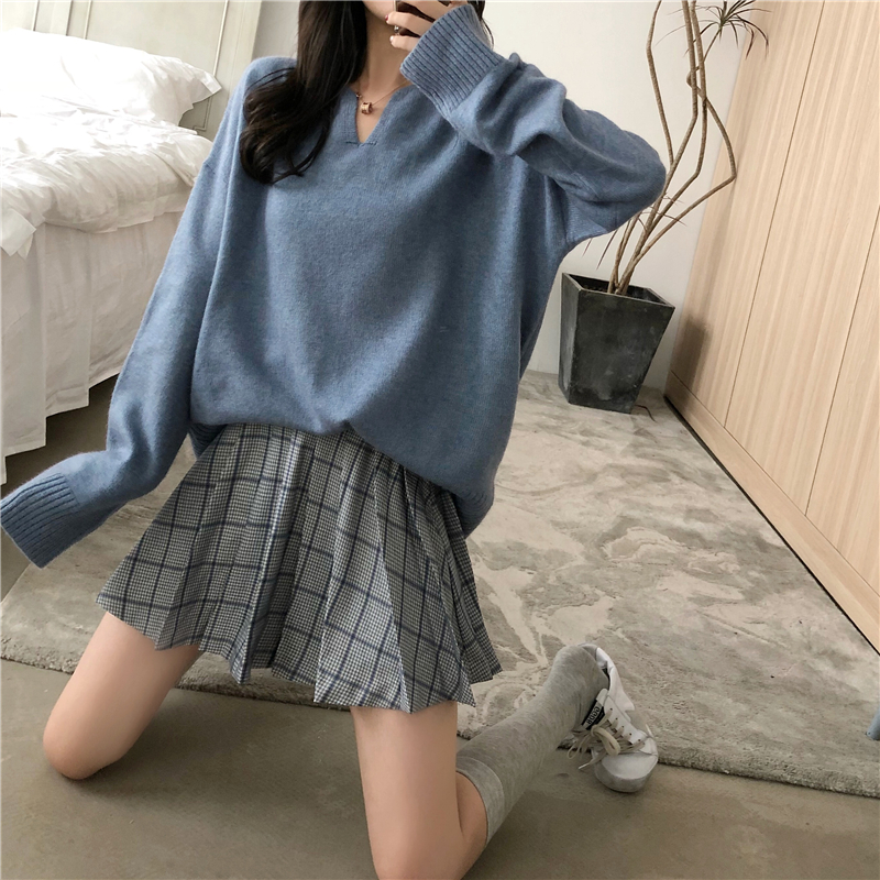 / 秋季毛衣女套頭寬松外穿慵懶風時尚韓版百搭針織衫網紅毛衣外套潮