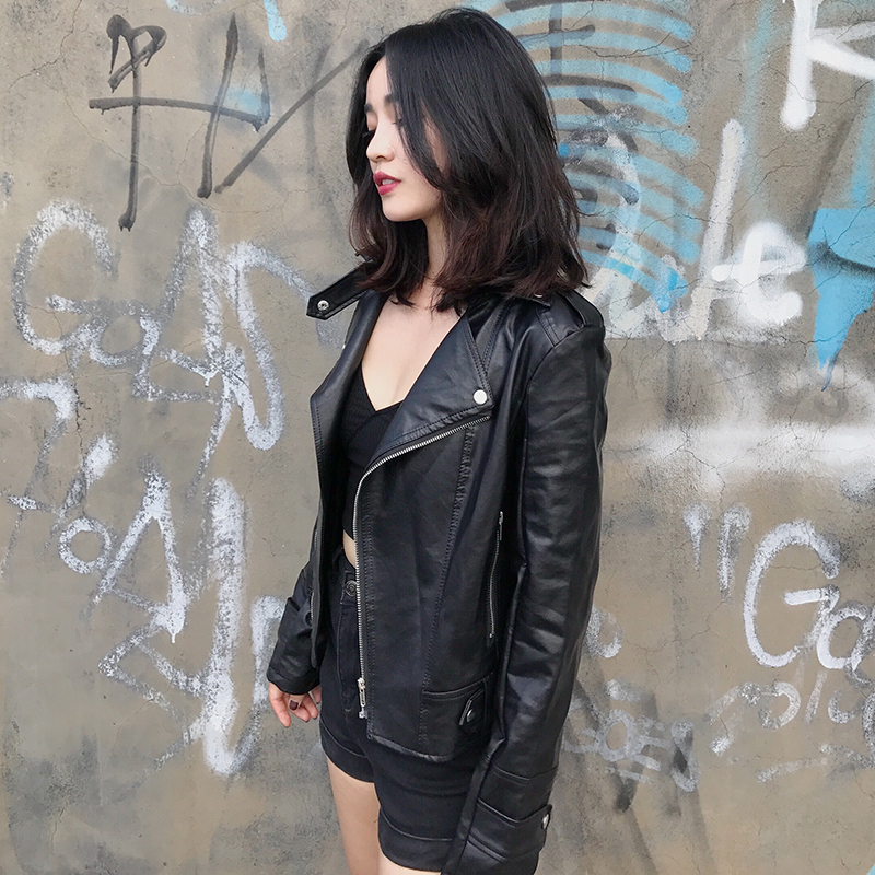 女秋裝新款韓版修身顯瘦機車皮衣女短款pu皮夾克拉鏈外套長袖上衣