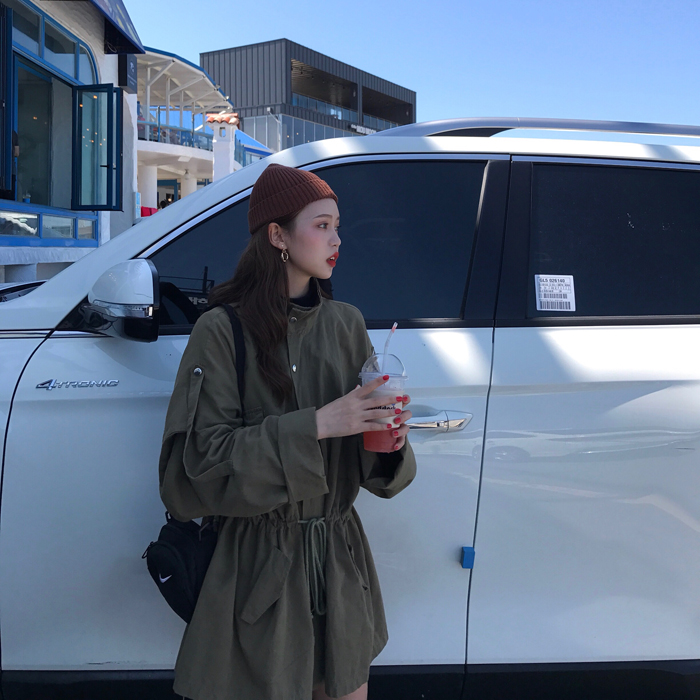 港風寬松復古時尚工裝風衣女中長款韓版秋季2018新款收腰短外套女
