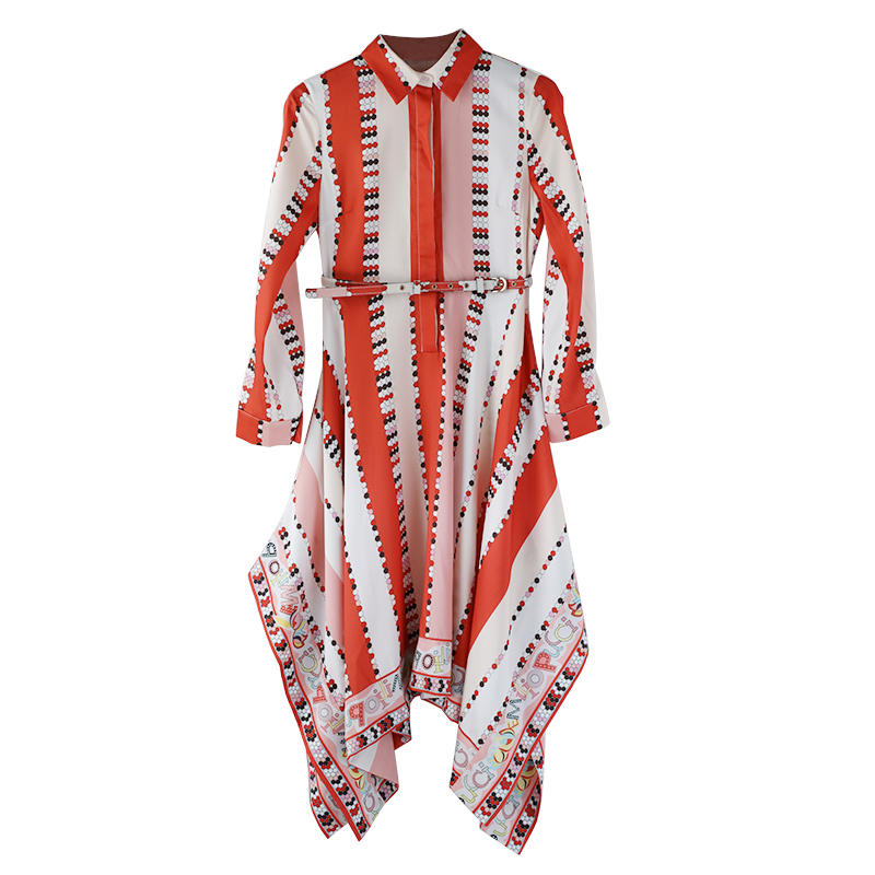 襯衫連衣裙女2018新款韓版印花撞色顯瘦中長款夏季收腰慵懶風裙子