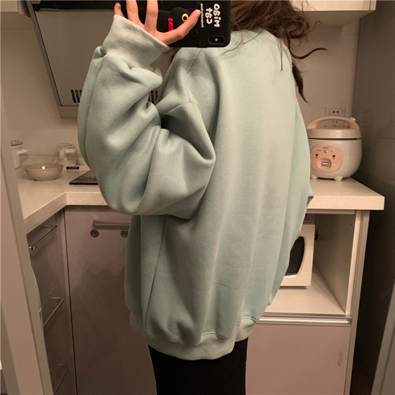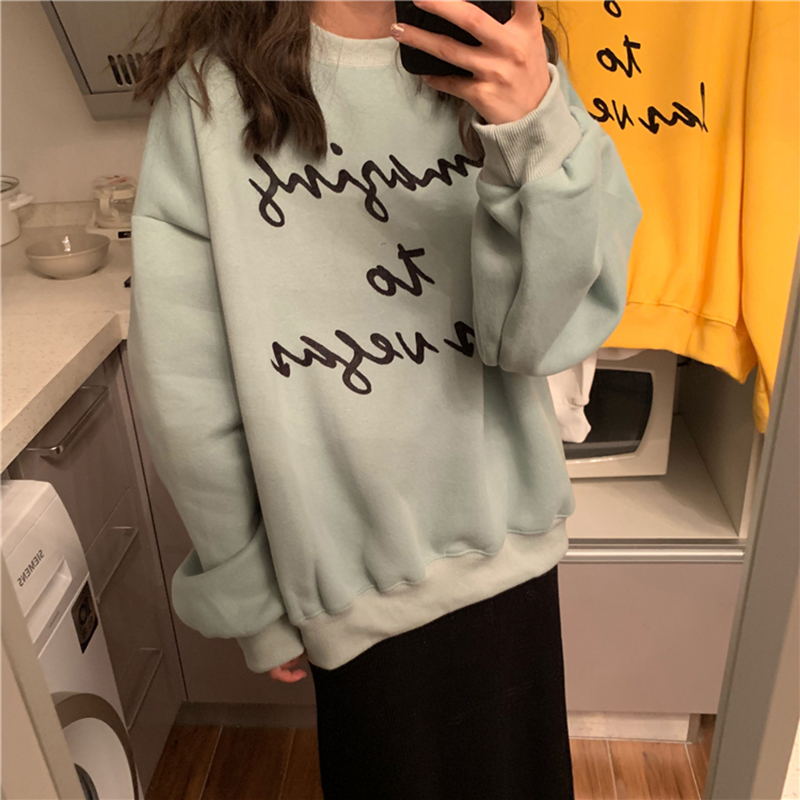 學院風簡約字母印花加絨衛衣女冬裝2018新款韓版百搭寬松長袖外套