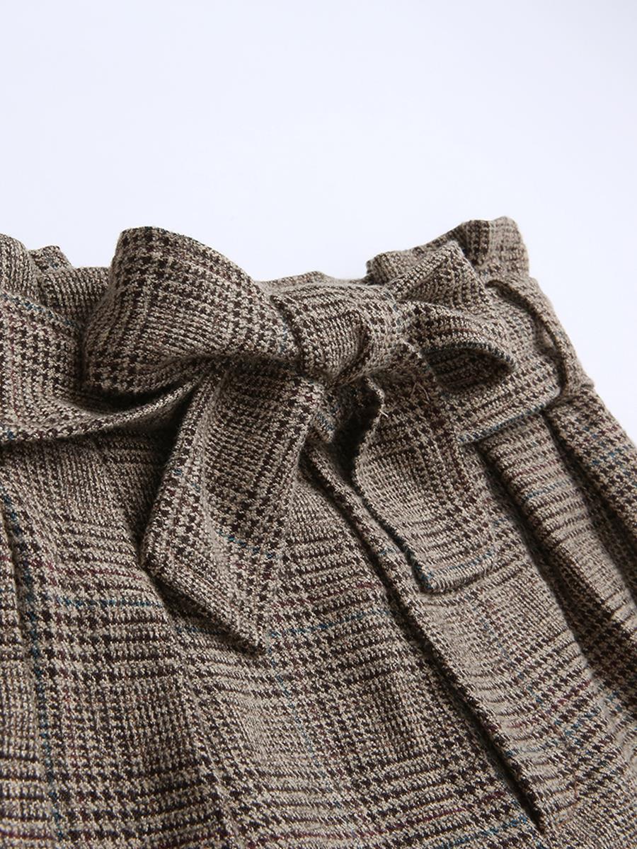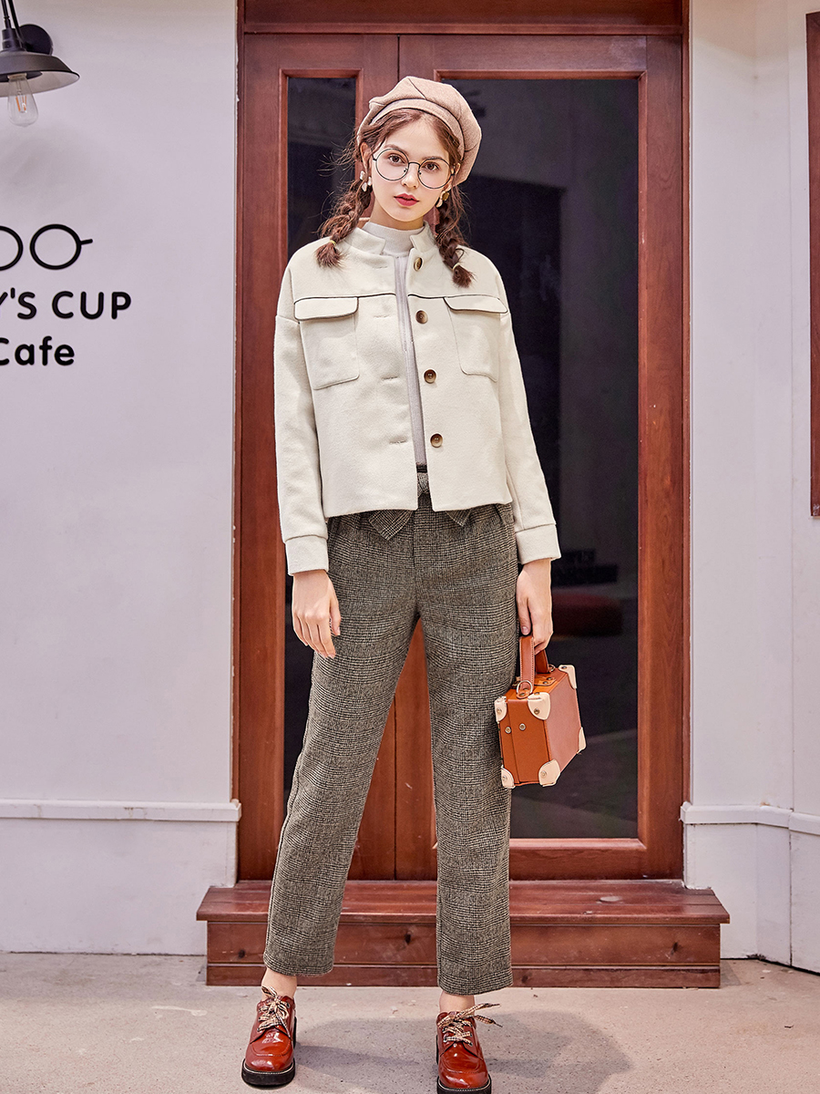 外套- 米色|褲子-格子